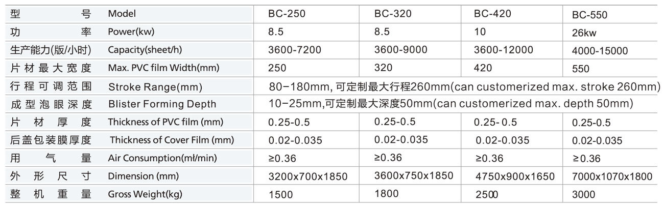 BC-250/320/420/550 Flat Aluminum-Plastic Blister Packing Machine